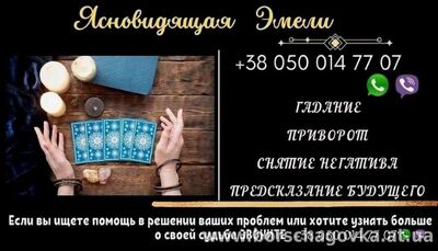 Гадалка в Киеве. Ясновидящая в Киеве. Снятие порчи в Киеве. Обрядовая магия Киев. Провидица в Киеве. Таролог в Киеве. Когда проблемы начинают давить со всех сторон — в семье, в любви, в деньгах, на работе — иногда достаточно одного разговора с человеком, который видит ситуацию глубже и может напр